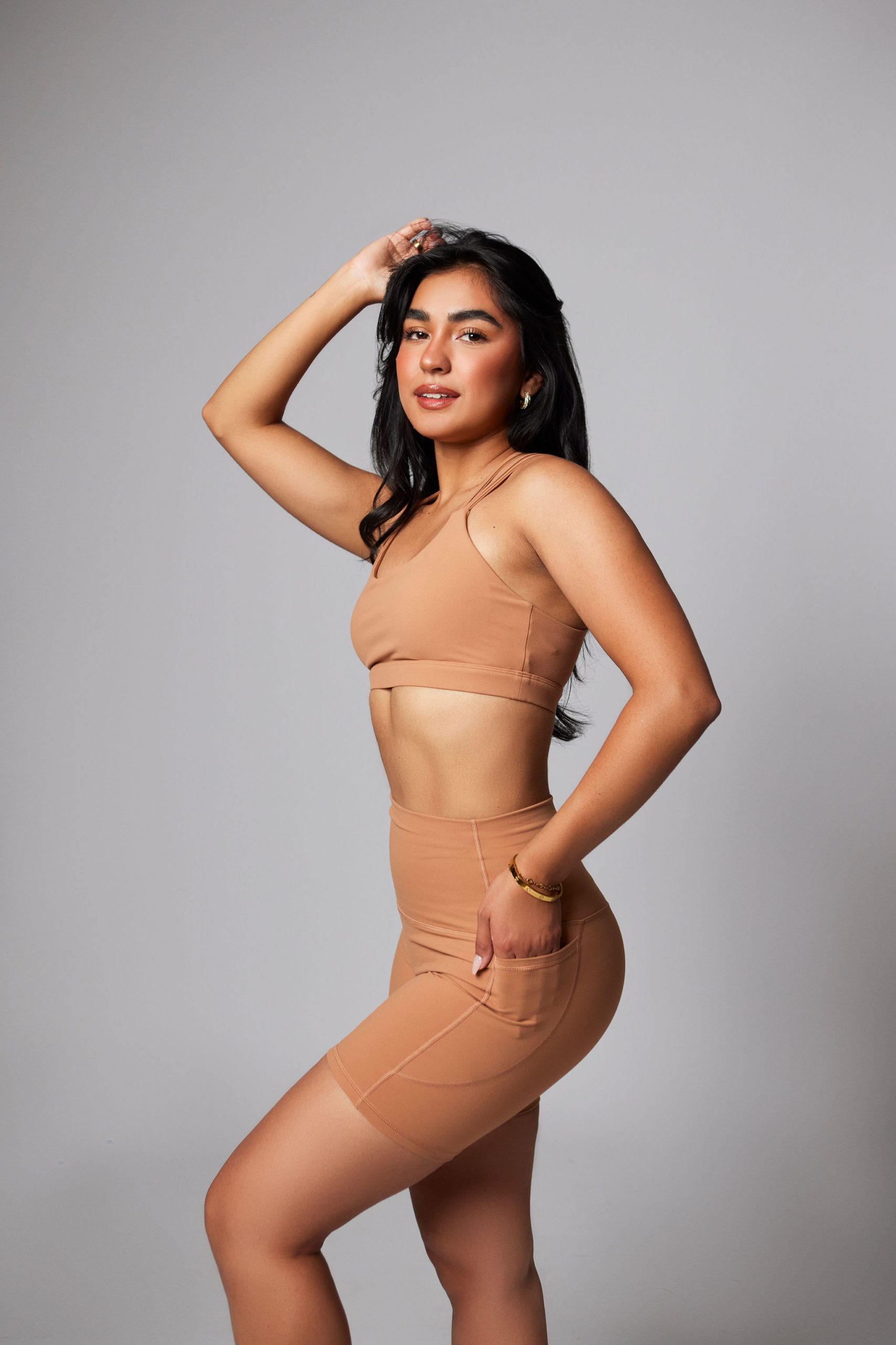 Our Gold Crayola Set is the perfect blend of function, form, and effortless style. This flattering neutral tone complements every skin tone and adds a touch of warmth to your workout wardrobe. The bra features a simple, supportive design that moves with you—no fuss, just focus. Paired with shorts that include sleek side pockets, this set is made for life on the go—whether you’re hitting a run, grabbing your post-workout matcha, or flowing through your morning routine. It’s the kind of set that makes you feel put-together, powerful, and ready for anything.