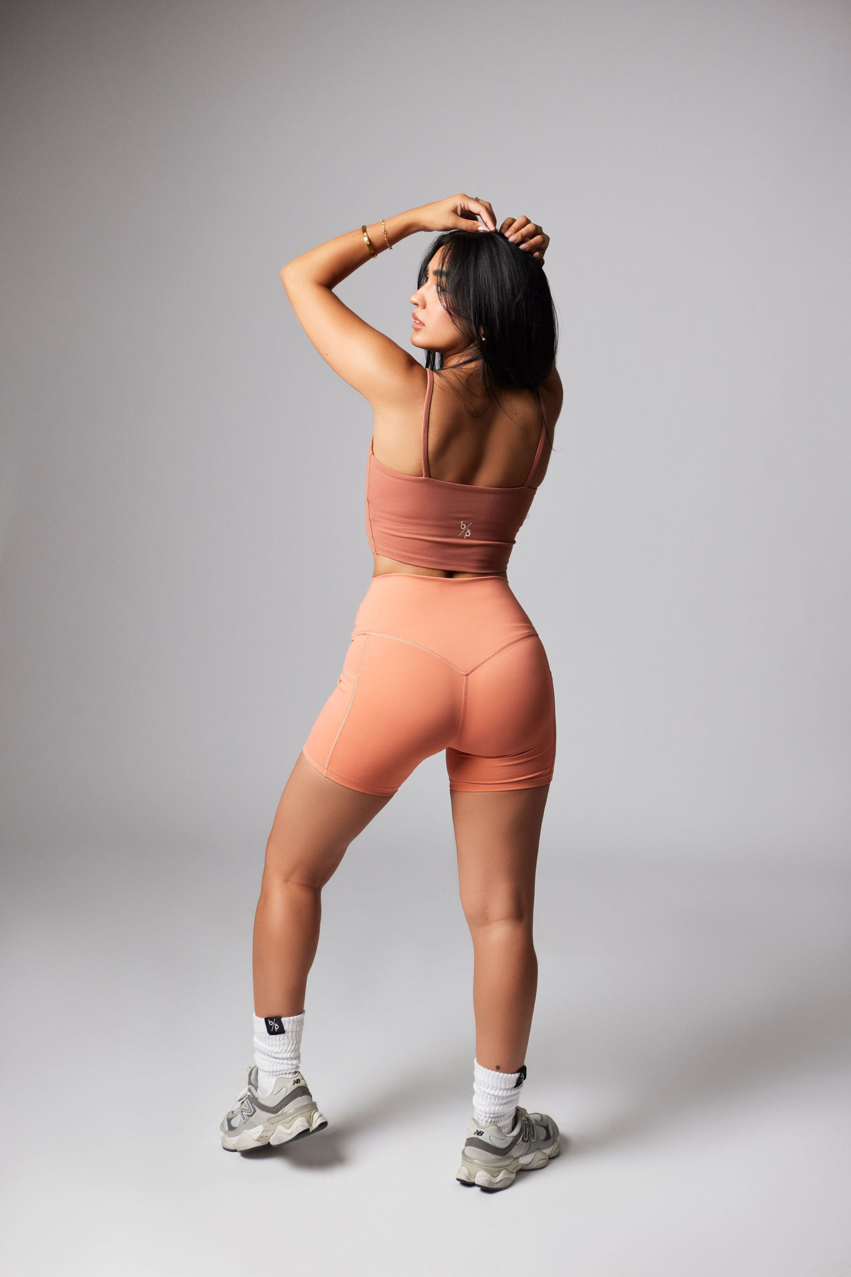 Say hello to the Peach Opal Shorts — a radiant fusion of function, comfort, and style. These buttery-soft shorts feel like a second skin while offering sculpted support where it matters most. With deep side pockets on both legs, you can move freely while keeping your essentials close. The high-rise waistband stays locked in place through every workout, stretch, or sprint. Perfect for pairing with any workout top, these shorts deliver bold color, sleek design, and everyday versatility. Designed to keep up — and stand out — wherever you go.